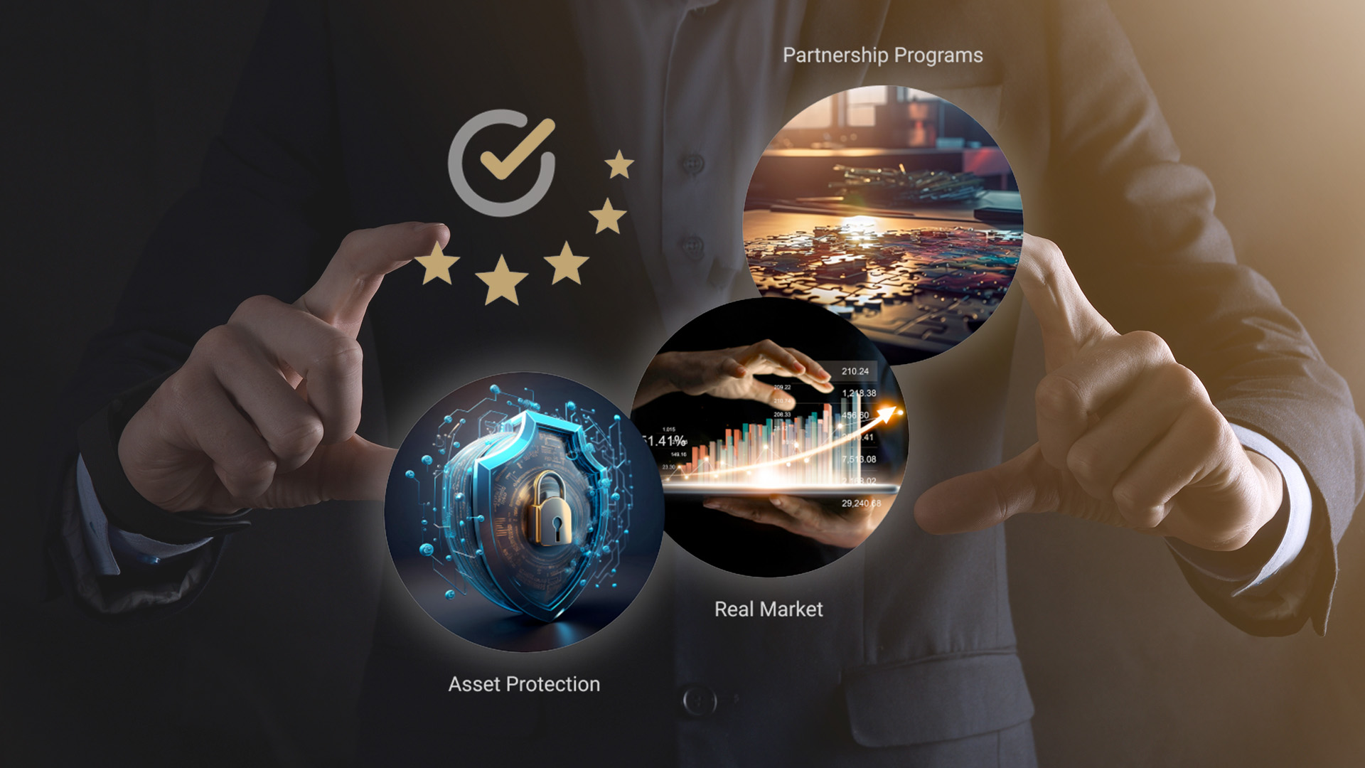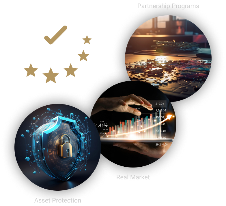 A unique financial product born from our in-depth understanding in the financial markets. It's designed to fulfil three crucial goals: secure capital placement, offering a bank-like low-risk experience; providing you with secure stock market trading; and guaranteeing you a steady, minimal income. Enjoy financial peace of mind.